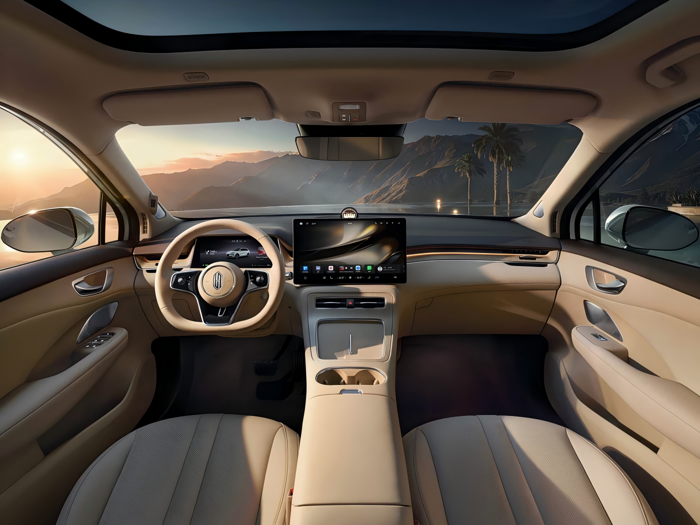 공식적으로는 샤오화 살구색 인테리어의 공식 이미지도 동시에 공개됐다. 3스포크 다기능 스티어링 휠, 하모니 인텔리전트 모빌리티 제품군의 아이코닉 스타링 디퓨저, 플로팅 중앙 컨트롤 스크린, 풀 LCD 계기판 등이 어우러져 뛰어난 인텔리전트 경험을 선사할 것으로 기대된다. 한편, 앞좌석 뒷면에는 화웨이 MagLink 인터페이스가 탑재돼 마그네틱 브라켓을 통해 뒷좌석 장치 확장이 가능해야 한다. 또한 Harmony Cockpit을 기반으로 멀티스크린 인터랙티브 연동이 가능합니다.
